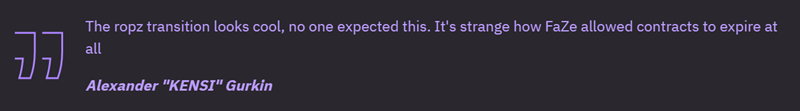 “ropz的转会看起来很惊人,没人预料到会这样。FaZe居然任由合同到期,这真的很奇怪。 ”