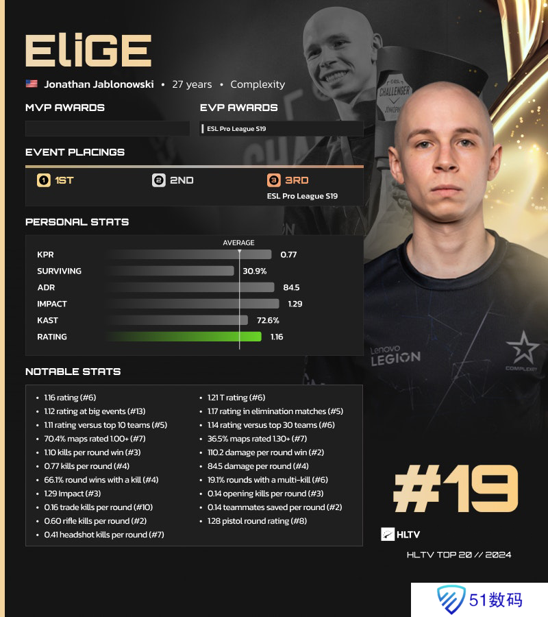 HLTV 2024年度最佳选手TOP19:EliGE