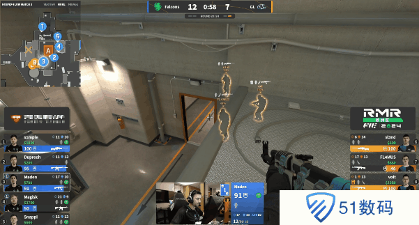 上海Major欧洲RMR A组,Falcons对阵GL,双方都在自己的选图上拿下胜利,进入决胜图Mirage后GL凭借更强大的配合以13-7赢下比赛。