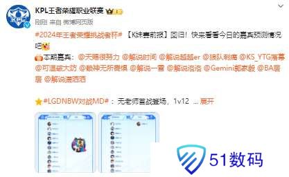 2024年王者荣耀挑战者杯 【K妹赛前报】回归!快来看看今日的嘉宾预测情况吧