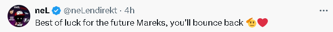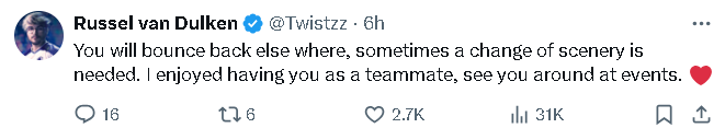 Twistzz:你会在其他地方再创辉煌,有时候换个环境是必要的。我很享受和你做队友的时光,期待在赛事中再见到你。