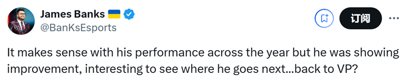 Banks:考虑到他这一整年的表现,(被下放替补席)是说得通的。但他其实已经在展现出进步的态势了,很想看看他接下来会去哪儿…… 重回