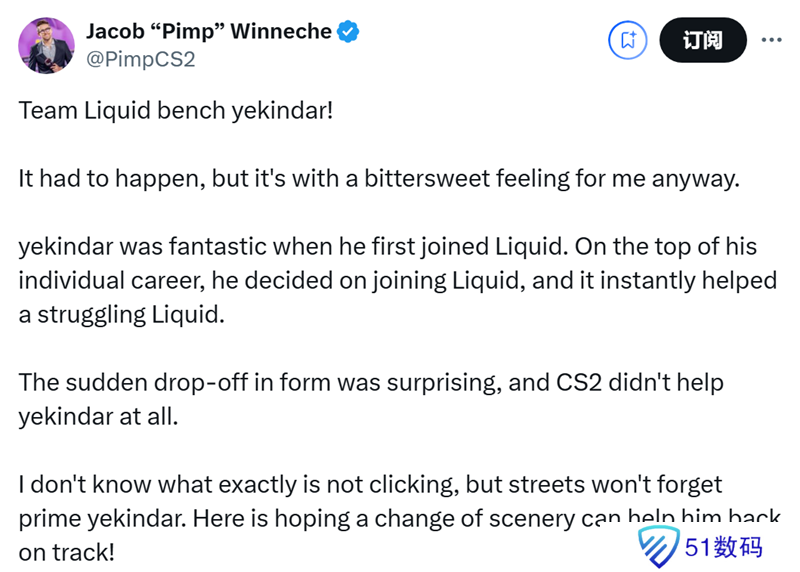 Liquid教练mithR:做出改变从来都是一件容易的事。我会非常想念YEKINDAR,祝你一切顺利!