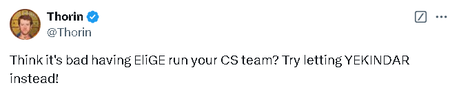 Thorin:你们觉得队伍中有EliGE是件糟糕的事情?那不如试试让YEKINDAR来吧!