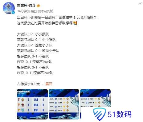 古德猫宁8-0**分成功拿下两个积分,无情铁手能否在后续对战热血小队扳回一城,和胖雷一起期待吧~