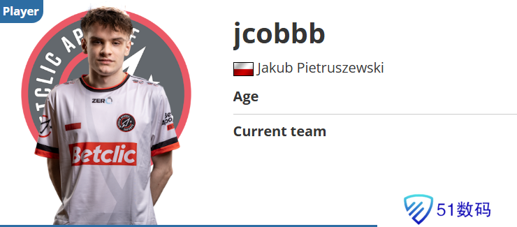 jcobbb现年20岁,相比于众多天才少年来说年龄可能稍显偏大。他的职业生涯履历非常简单,他在2022年7月加盟自己首支有HLTV记录的战队,在2023年11月到2024年1月期间效力于