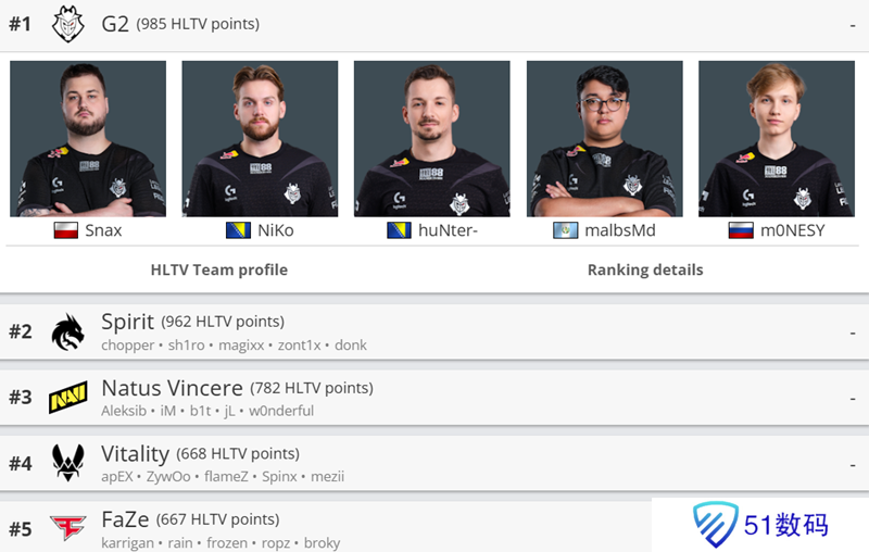 在CS中并没有能让战队取得好成绩的万能秘诀,但阵容的稳定性可能是一个关键因素。目前HLTV世界排名前五的战队,就体现了队员阵容的稳定性对其在赛事中取得成功的助力。