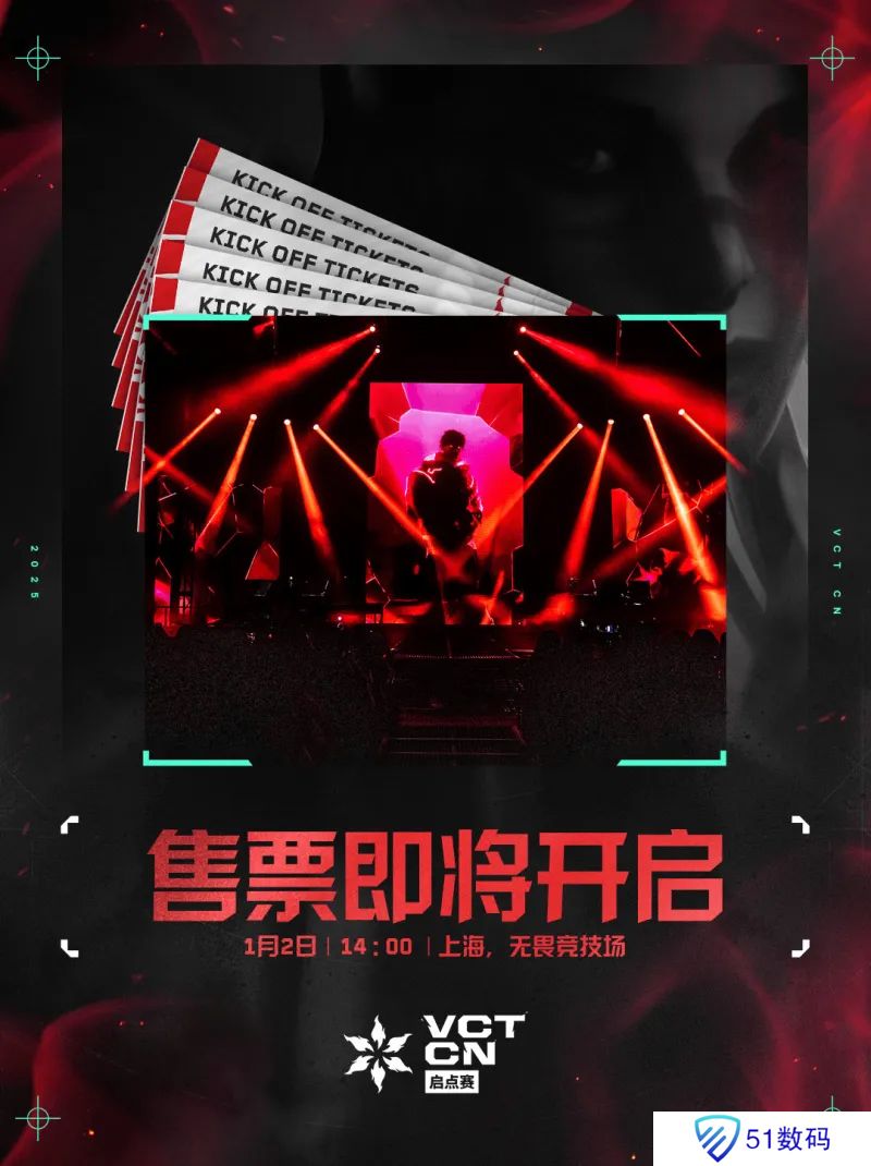 2025 VCT CN联赛启点赛(2025年1月11日至2025年1月25日)单日票将于2025年1月2日14:00开始售卖,每个比赛日的门票在当日比赛开始前1小时(16:00,启点赛阶段比赛开始时间保持一致)停止售卖。