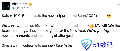 Virtus.pro官宣与ICY签订了为期四年的合同。