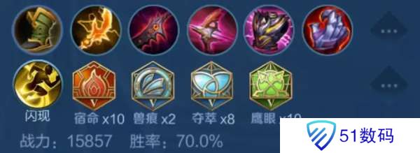 出装铭文:10x宿命,10x鹰眼,2x兽痕,8x夺萃