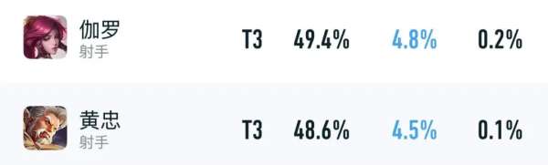 T3:黄忠,伽罗,李元芳