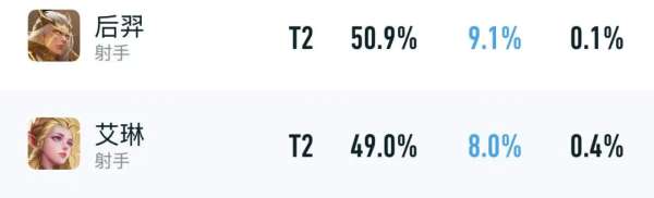 T2:鲁班七号,虞姬,司空震,蒙犽,戈娅,后羿,艾琳