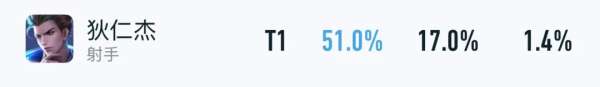 也正因如此,狄仁杰在巅峰赛里,才依旧保持着51%的胜率,这还是在18.4%BP率的前提下,优先级还是能排在发育路的前五位。