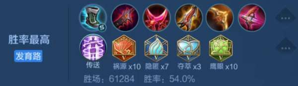 以上则是公孙离胜率最高的打法,铭文和装备都不变,仅仅是把被削弱后的狂暴替换成传送了,通过传送到处支援+吃线。
