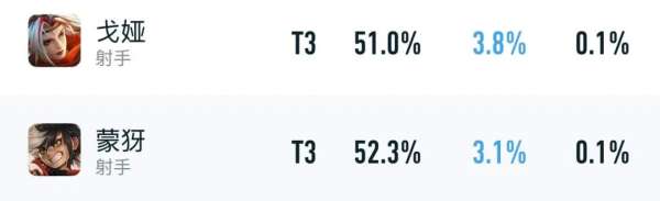 以上是他俩目前的巅峰赛数据,虽然胜率均超过51%,但出场率却比以前缩水了一半有多,尤其是戈娅,最近还被策划砍了一三技能的减速效果,甚至狂暴都削弱了,使得她的胜率也低了2%。