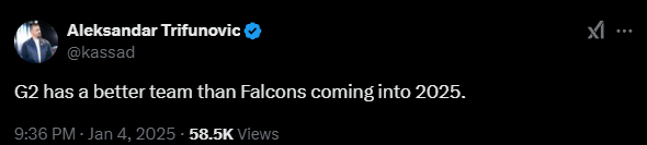 Aleksandar Trifunović | kassad也对Falcons新阵容发表了评价:“2025年初,G2的阵容要比Falcons阵容更强大。”