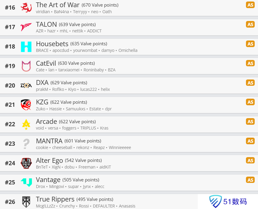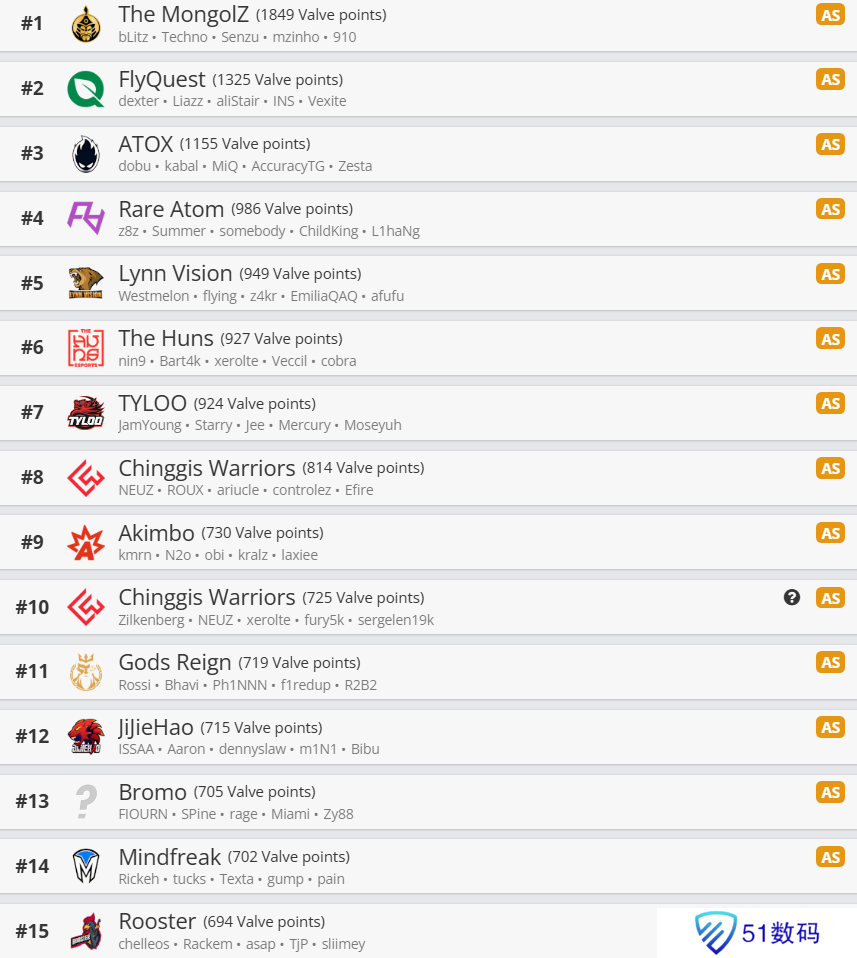 若有队伍拒绝邀请,名额将顺延给Valve地区排名(VRS)中名次紧随其后的队伍。