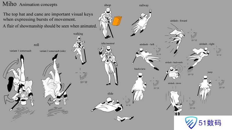 手杖和高顶礼帽可以作为强调移动爆发的很好方式。