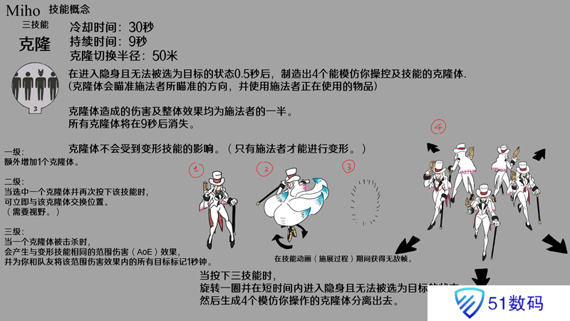 三技能“克隆”是一个绝佳的逃生工具,还可用于多种不同情况,比如应对半血小兵、扩大技能范围或物品作用范围,并且如果位置摆放精准的话,还能造成高额伤害(此处“nuking”原意为用***攻击,游戏语境中常指造成高额伤害)。