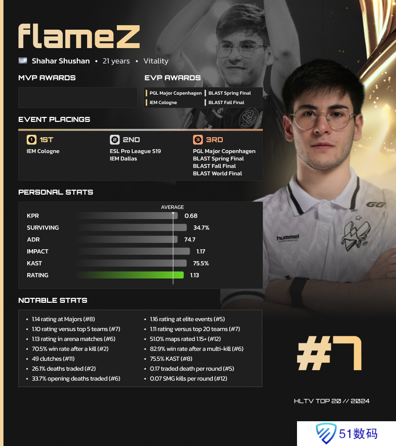 HLTV 2024年度最佳选手TOP7:flameZ