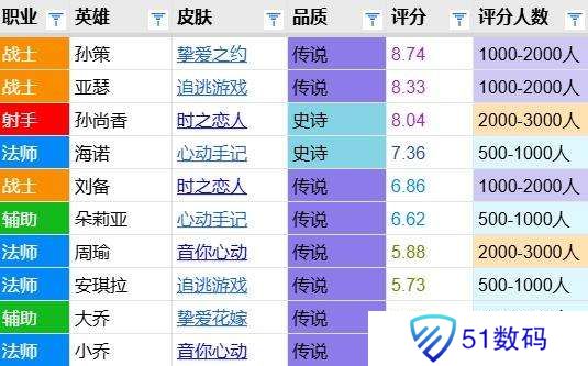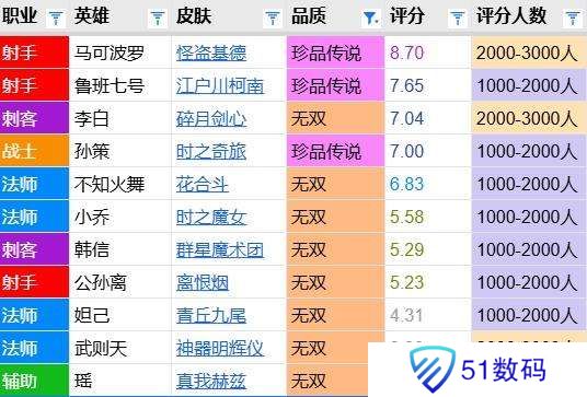 孙策皮肤评分对比:龙年限定9分居首 时之奇旅7.0分