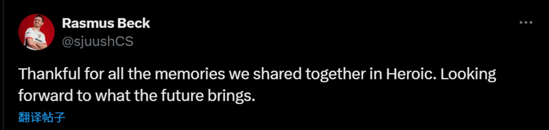 “感谢我们在HEROIC一起分享的所有回忆,”sjuush在社交媒体上写道,“期待未来的发展。”
