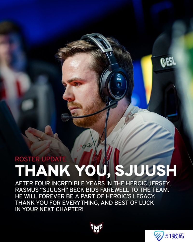 HEROIC:怀着沉重的心情,我们在度过了4年难忘时光后,向sjuush道别。感谢你的一切。