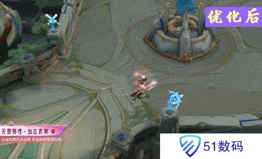 最后是1技能新增的随机特效,原来1技能只有一个特效,炫光灯球直直的平行飞出去,优化后会多一个炫光灯球从飞出去变成弹跳出去的特效,这里有点和行走的蹦蹦跳跳相呼应的感觉,一个6个特效的大变,直接让瑶赢麻了。