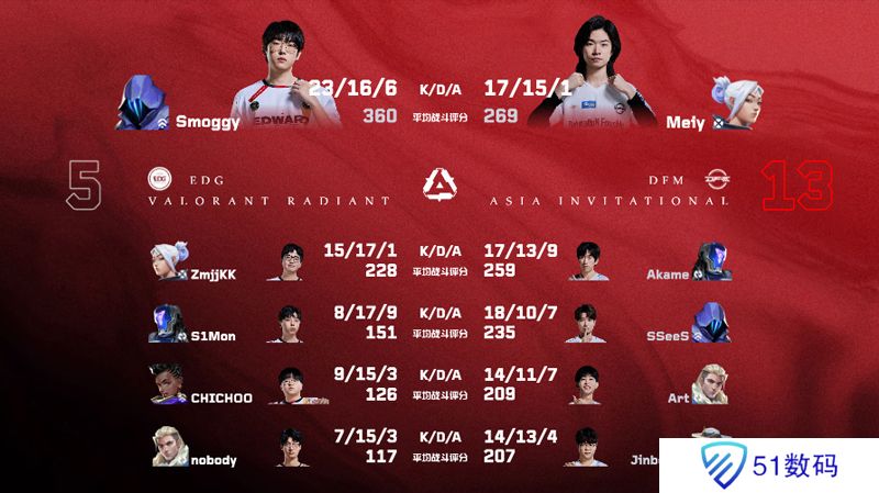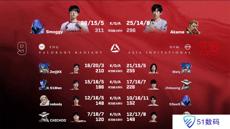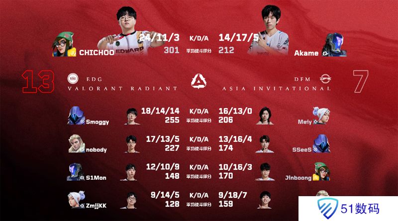 第一张地图亚海悬城,EDG 13:7 DFM,MVP给到了CHICHOO。