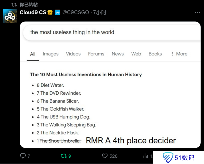 Cloud9:最没用的东西,RMR A组第四名争夺战。
