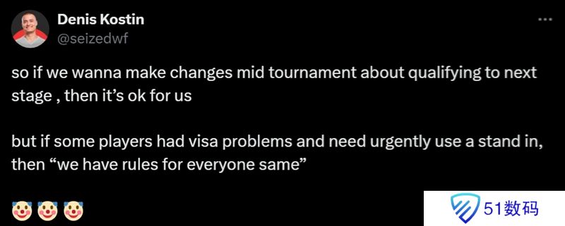 但如果有些选手签证有问题,急需使用替补,那么“我们的规则是一视同仁的”。