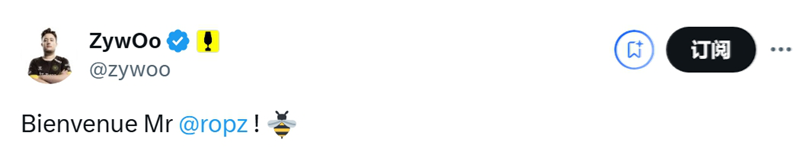 ZywOo:欢迎ropz先生!