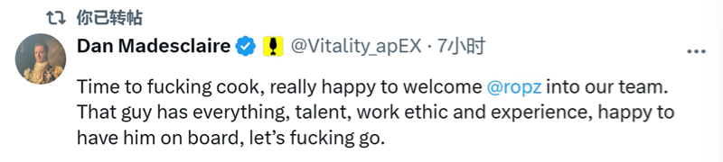 Vitality成员对ropz的欢迎动态吧。