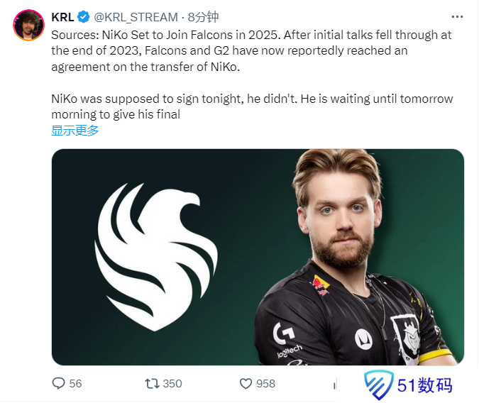 赛季结束几周后,NiKo转会Falcons的消息正式确认。他将与四名新队友一起开始2025年,但他对冠军的渴望依然未变。