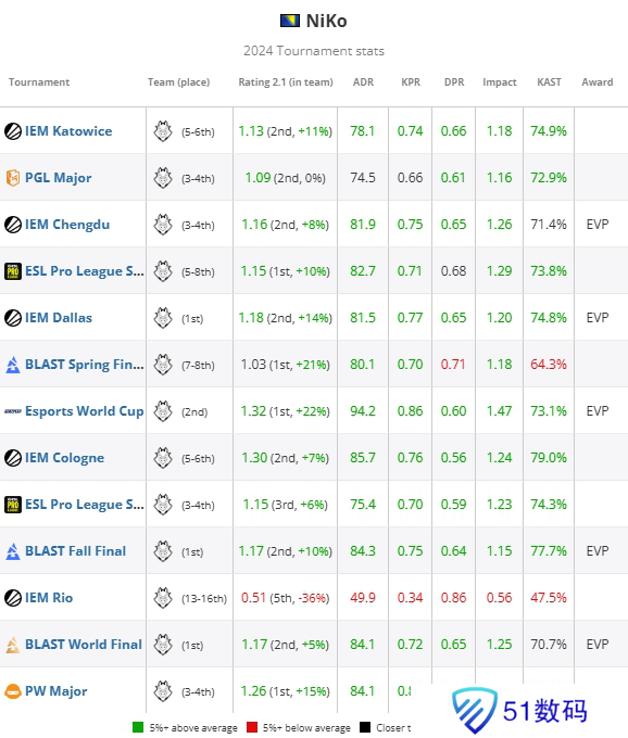 在Major后,NiKo前往亚洲参加了IEM 成都站的比赛,这也是他今年获得的第一个EVP奖项。在这次比赛中,这位选手在比赛后期表现不佳,在半决赛对阵MOUZ的比赛中,他的Rating只有0.95,这是因为他的队伍在输掉的两张地图上的Rating都低于平均水平。不过,这并不影响他之前的出色表现,尤其是在对阵HEROIC和