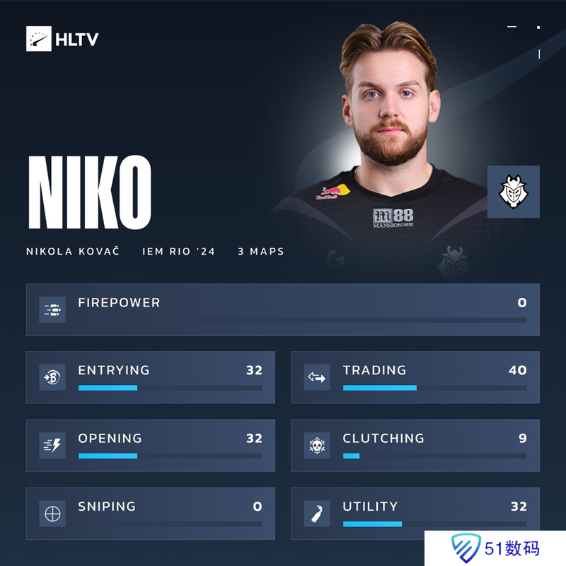 由于存在如此多的问题,NiKo在本次比赛中表现最差也就不足为奇了,他的平均Rating只有1.03。