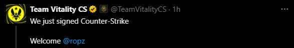 Vitality官方宣布签下ropz,填补了下放Spinx至替补席后阵容的空缺。这一签约证实了HLTV先前的报道。