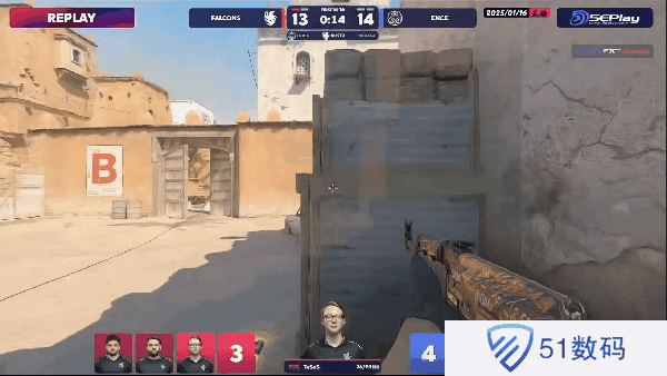 加时上半场ENCE先拿一分,下一回合TeSeS三杀拒绝对手打b。加时上半场最终局gla1ve指挥夹a奏效,比分14-13。