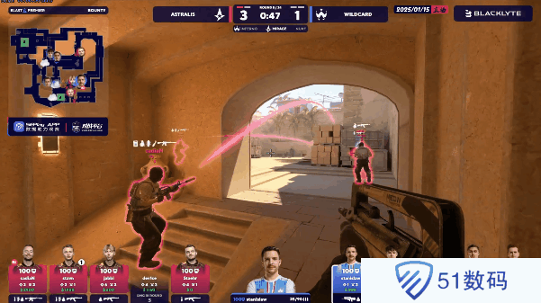 手枪局Astralis直接五人中路进攻A区,dev1ce三杀为队伍奠定胜局。次回合Wildcard选择强起,开局拿到优势的他们在枪械劣势的情况下没能组织起有效的防守,jabbi与Steahr双人四杀拿下胜利。比分顺势来到3-0。