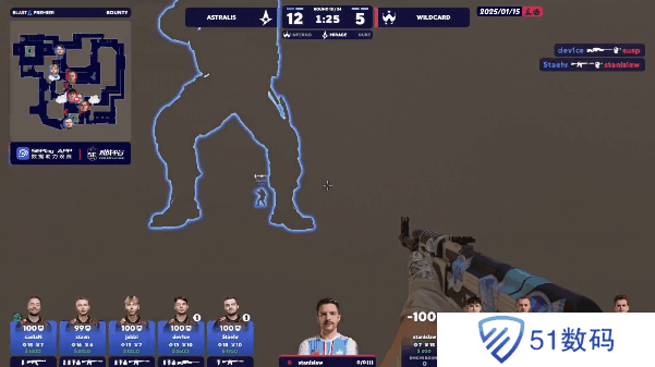 BLAST 赏金赛 S1,Astralis对阵Wildcard,图一Astralis在dev1ce的带领下以13-8拿到胜利。进入自己选图后Astralis更是展现出超强的压制力,最终以13-5轻松获胜。