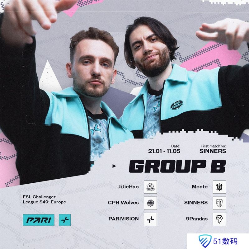 随后,PARIVISION宣布了队伍即将参加1月21日开始的ESL 挑战者 S49欧洲区的比赛。
