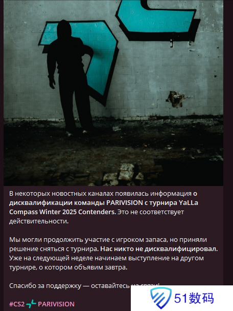 “一些新闻频道报道称,PARIVISION团队被取消了参加YaLLa Compass 冬季赛 2025 竞争者锦标赛的资格,但这不是真的。
