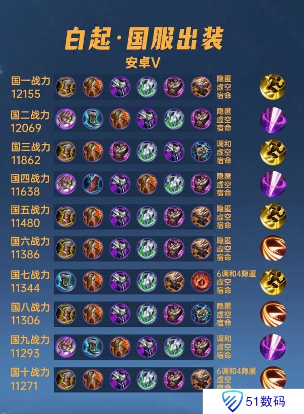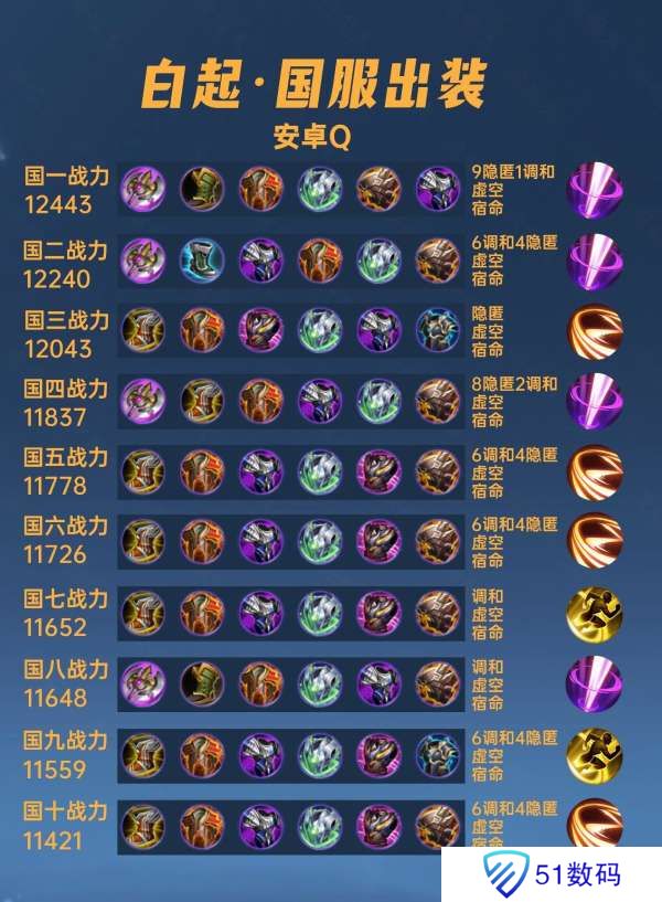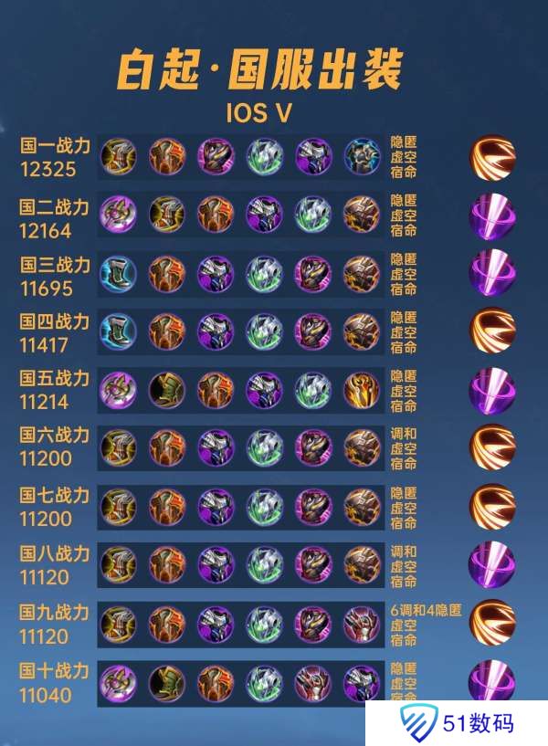 这篇文章我们来看一下40位国服白起的出装铭文汇总。