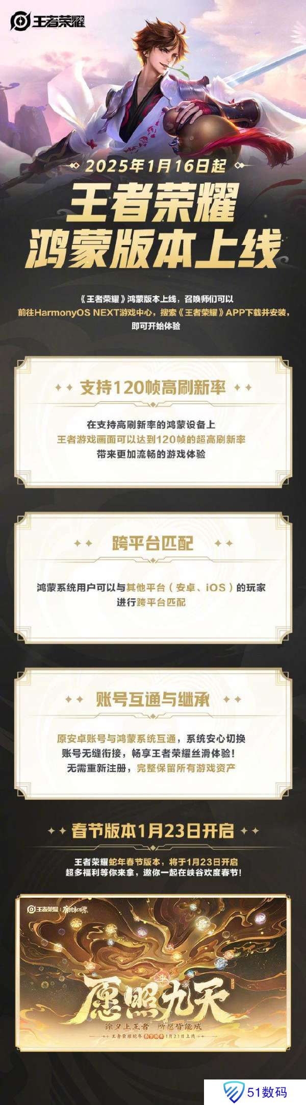 虎扑01月16日讯,《王者荣耀》鸿蒙原生版今日正式上线。1月16日起,原安卓账号与鸿蒙系统安心切换,资产完整保留,全平台互通匹配。