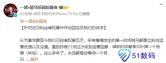 虎扑01月17日讯 一诺后援会回应节奏:队友房管夹带个人情绪,告黑要有后续