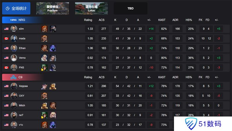 图一裂变峡谷,双方常规时间战至12平,通过一轮加时,NRG 12:14 C9,图二莲华古城,NRG 10:13 C9。纵观全场比赛,Xeppaa拿到了最高的54总击杀。