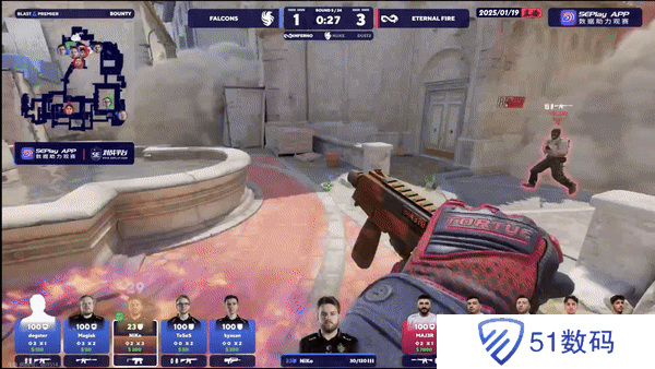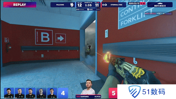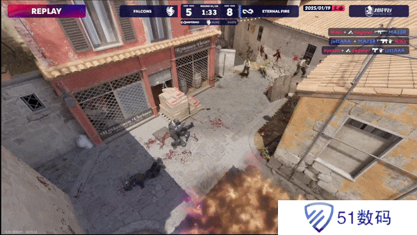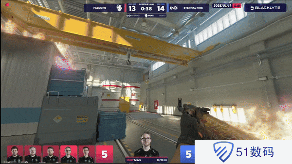 攻防转换。永恒之火铁门黄房夹击A区,但被猎鹰众人逐个击破,Falcons拿下下半场手枪局。