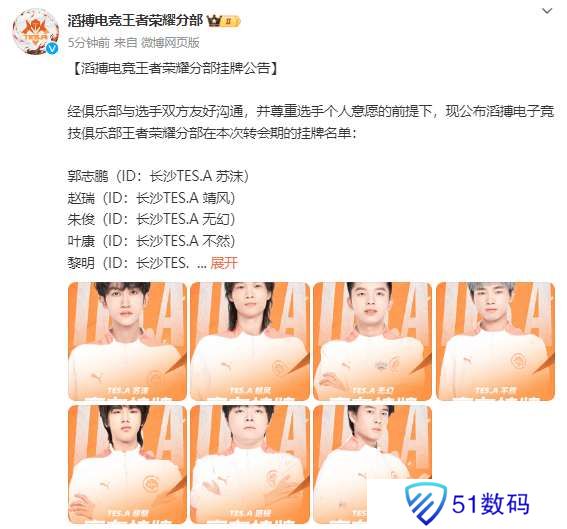 经俱乐部与选手双方友好沟通,并尊重选手个人意愿的前提下,现公布滔搏电子竞技俱乐部王者荣耀分部在本次转会期的挂牌名单: