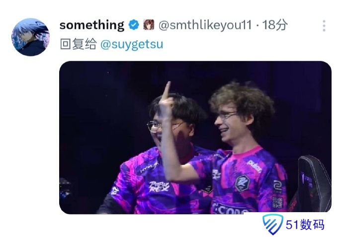 随后,PRX战队的著名“竖中指”选手something也用自己的表情包进行了回复。