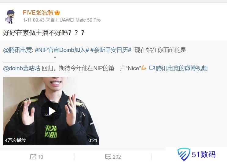 相关阅读:黄旭东:张浩瀚做了个Doinb好好做主播牌子,打算赢了就举的